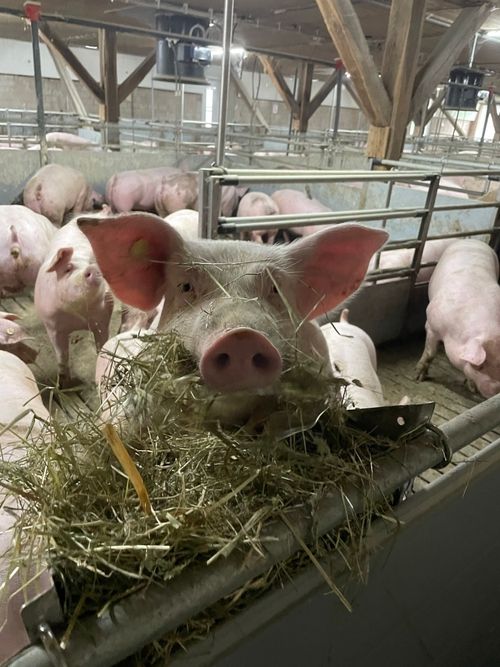 Haltungsstufe 2 steht bei uns für mehr Tierwohl: mehr Platz, natürliches Tageslicht und sinnvolle Beschäftigung für die Tiere, sowie eine zusätzliche Buchtenstrukturierung. So entsteht eine Umgebung, die Bewegung, Ruhe und Natürlichkeit vereint – und damit die Grundlage für hochwertige, verantwortungsvoll erzeugte Produkte schafft.
